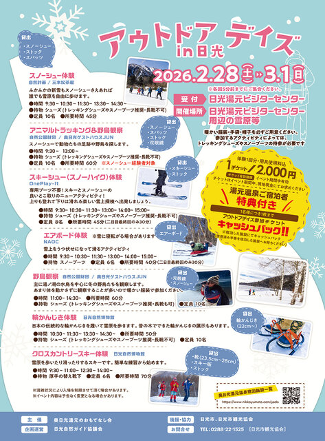冬のアクティビティ体験が2026年2月28日(土)・3月1日(日)に開催。